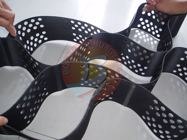 蜂巢土工格室是一種新型土工合成材料,是以高分子聚合物片材,經(jīng)超聲波焊接而成具有三維網(wǎng)狀立體結(jié)構(gòu)的格室。使用時(shí)展開(kāi)呈網(wǎng)絡(luò)狀,填入沙子碎石及泥土等松散料形成一種整體機(jī)構(gòu)的組合材料??筛鶕?jù)客戶(hù)要求在片材上蜂巢或印花,以增強(qiáng)其側(cè)向透水能力,加大與地基材料的摩擦力和結(jié)合力。